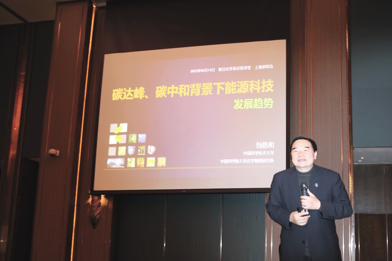 2022年2月14日上午, 成人直播 “近思讲坛”第十九讲顺利举行。中国科学院院士、中国科学技术大学校长包信和教授应邀作了题为“碳达峰、碳中和背景下能源科技发展趋势”的报告。龙蟒佰利联副董事长谭瑞清先生,雅本化学董事长蔡彤先生,国家杰出特聘专家、信达生物首席运营官周勤伟博士,国家杰出特聘专家孙琦教授等成人直播 校友,成人直播 常务副书记周亚明教授,发展规划处处长吴力波教授等应邀出席了报告会。赵东元院士,张东辉院士以及120余名成人直播 教师参加了报告会。