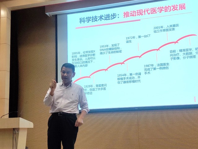 2020年10月22日晚上19:00,中国科学院院士、发展中国家科学院院士、欧洲科学院院士谭蔚泓教授应邀请在江湾校区先进材料实验室一楼报告厅作了题为“健康中国时代的分子科学”的学术报告。报告会由成人直播 系主任贺鹤勇教授主持,来自成人直播 、高分子系、先进材料实验室等院系一百多位师生参加了报告会,报告厅座无虚席。