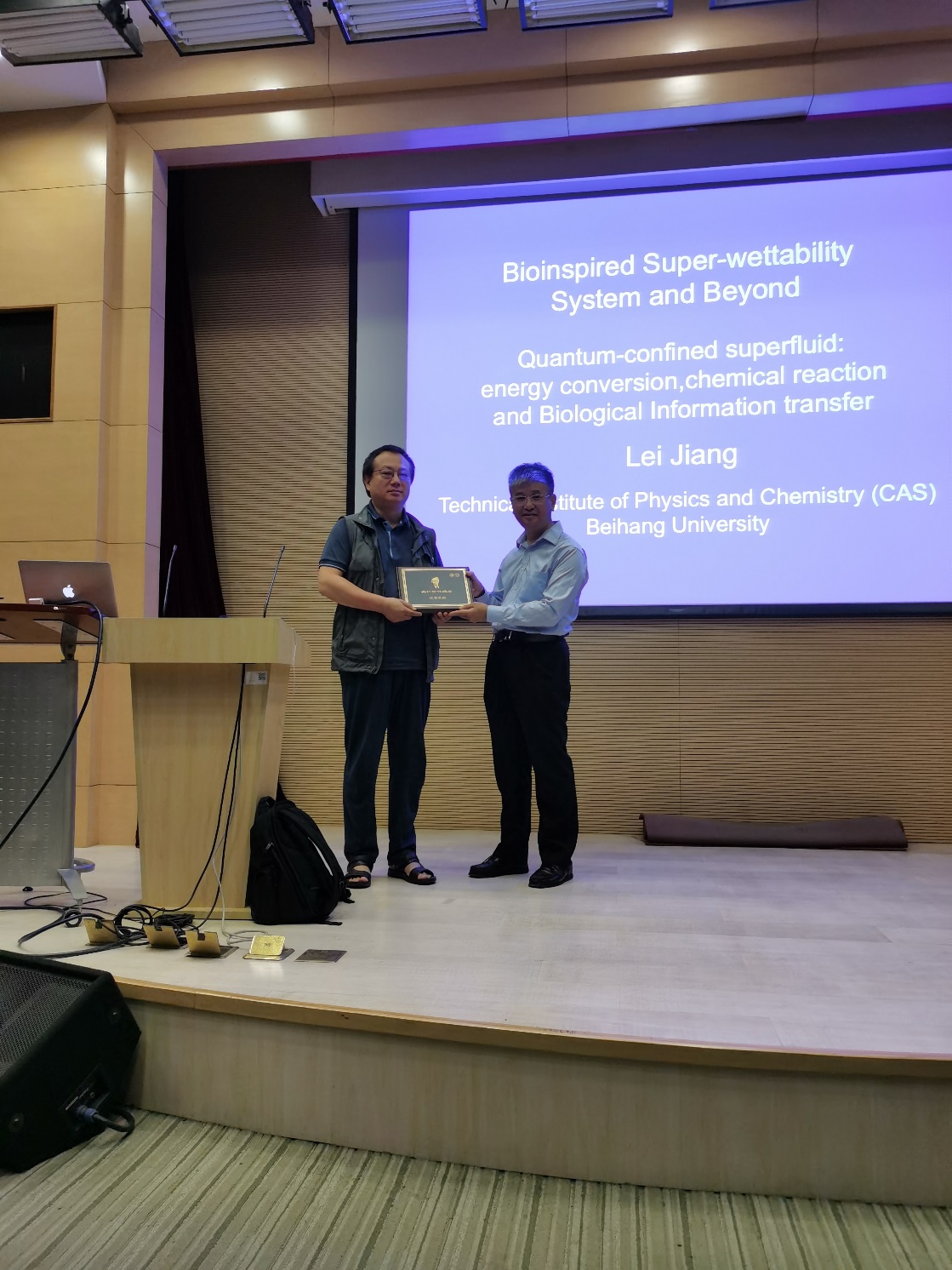为了表彰江雷教授在化学科研领域做出的卓越贡献,贺鹤勇教授代表“近思讲坛”组委会向江雷教授颁发了成人直播