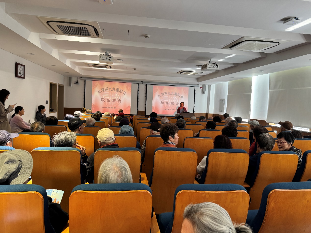 金秋送爽,丹桂飘香。2025年10月28日上午,成人直播 于邯郸路校区化学楼举办重阳节敬老活动,七十余位退休老同志欢聚一堂,在欢声笑语中共庆佳节。成人直播 分党委书记马蔚纯、副主任王文宁、分党委副书记秦枫,特邀浦东新区养老集团副总裁黄茵茵、曹路养护院副院长潘燕敏,以及系办公室老师们出席活动,向退休教师致以节日的美好祝福与问候。