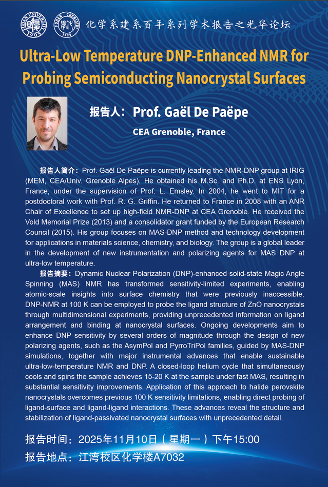 Ultra-Low Temperature DNP-Enhanced NMR for Probing Semiconducting Nanocrystal Surfaces(取消)